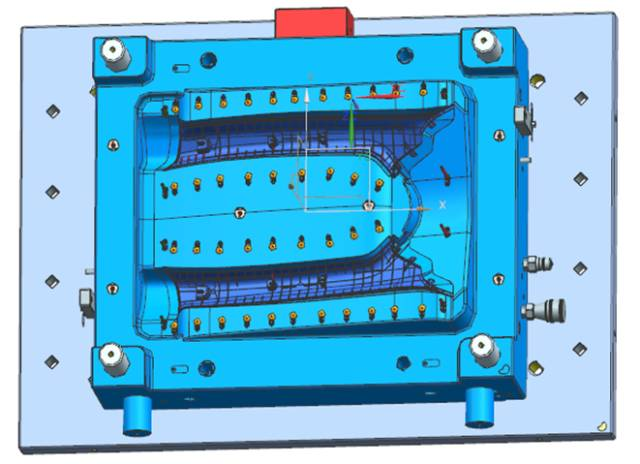 在汽車注塑模具中,針對汽車保險杠產品,模具設計時通常會采用先進的內分型面技術。其優點是分型夾線隱藏在保險杠的非外觀面上,在汽車上裝配后看不到外觀夾線,不會影響產品外觀。但這種技術在難度與結構上都要比外分型保險杠復雜,技術風險也較高,模具成本與模具價格也會高于外分型保險杠很多,但因外觀美觀,在中高檔汽車中被廣泛應用。
